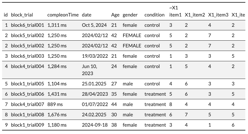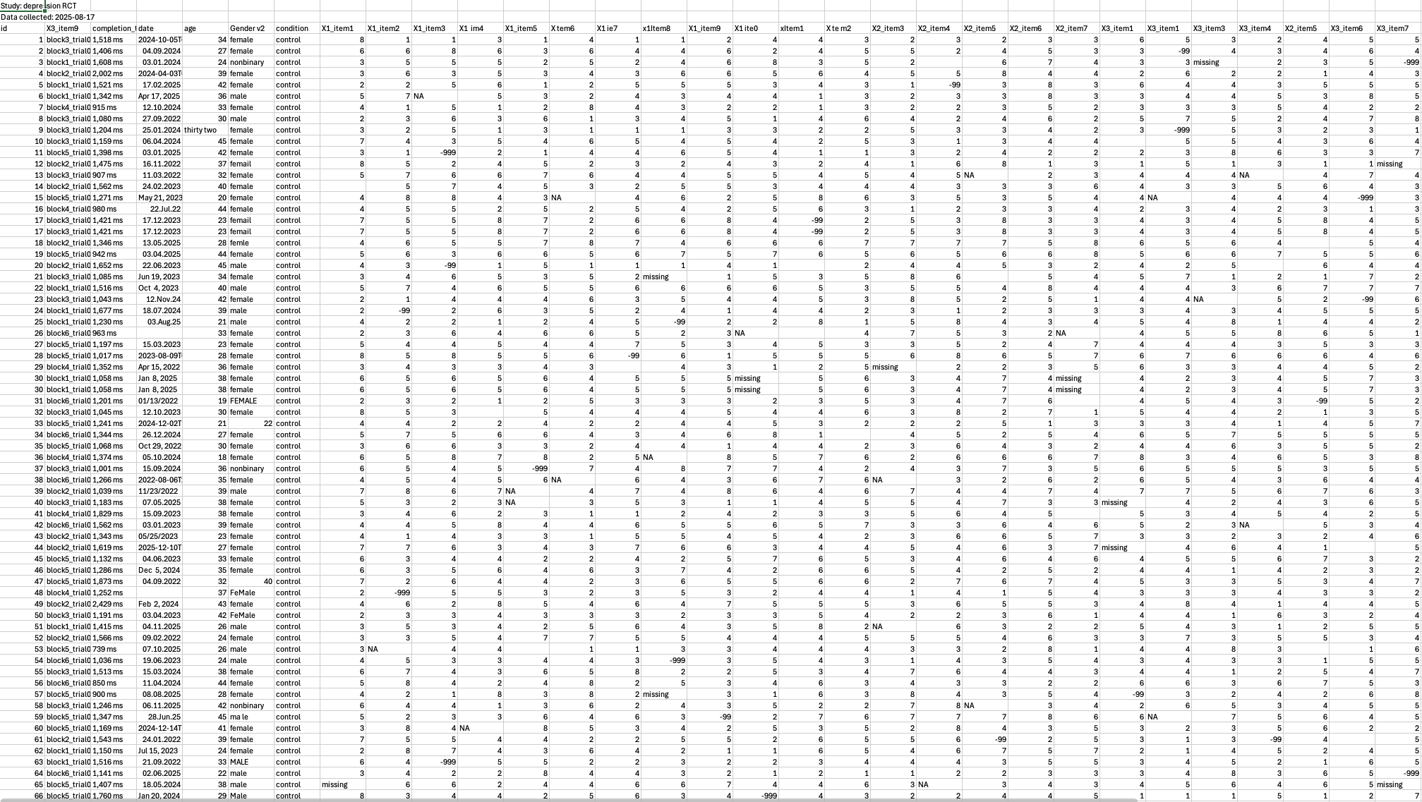 id | age | gender | condition | X1_item1 | X1_item2 | X1_item3 | X1_item4 | X1_item5 | X1_n_nonmissing | X1_sum | X1_items | X1_reversed_items | X1_n_impossible | X1_impossible_items |